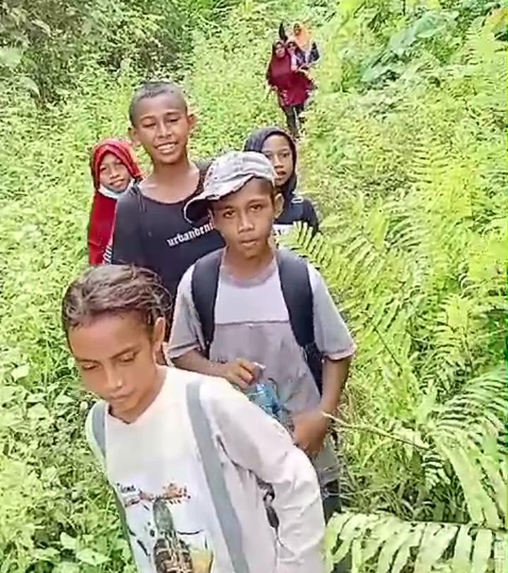 Malut, Investigasi.news – Cerita sedih ini datang dari Sekolah Dasar Negeri/SDN di Desa Wailoba-Kec. Mangoli Tengah, Kab. Kepulauan Sula-Maluku Utara, dimana siswa-siswinya harus berjuang keras jalan kaki ke kota kecamatan demi bisa mengikuti ujian assesmen.