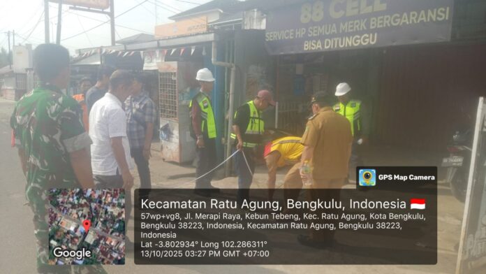 Bengkulu, Investigasi. News– Kegiatan mediasi dan pengukuran pembuatan oprit untuk proyek pembangunan Box Culvert Kebun Tebeng berlangsung lancar dan kondusif di Kantor Lurah Kebun Tebeng, Jalan Merapi Raya, Kecamatan Ratu Agung, Kota Bengkulu, Senin (13/10/2025) pukul 14.00 hingga 17.30 WIB.