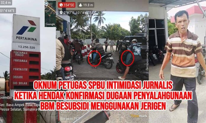 Pessel, Investigasi.News- Nagari Riak Danau, Kecamatan Basa Ampek Balai (BAB) Tapan, Kabupaten Pesisir Selatan (Pessel), Sumatra Barat, menjadi sorotan publik. Pada Jumat, 13 Februari 2026, seorang jurnalis bernama Sami dari media online mengalami intimidasi dan kekerasan verbal ketika hendak mengonfirmasi dugaan praktik penyalahgunaan Bahan Bakar Minyak (BBM) bersubsidi di SPBU Tapan. Bukannya mendapat klarifikasi, ia justru dihina, diancam, bahkan diusir secara kasar, Diduga oleh oknum petugas SPBU.
