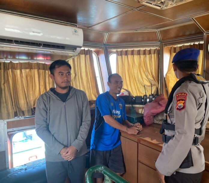 Selama patroli, kapal polisi menyandar di kapal Tugboat yang sedang lego jangkar di koordinat 03°50,545″S/102°12’560″E. Personel Aipda Arif dan Briptu Yafisman melaksanakan dialogis dengan ABK kapal Tugboat, memberikan himbauan utama ,Memperhatikan kondisi alat keselamatan di atas kapal Dan Mengawasi perubahan cuaca dan gelombang tinggi yang kerap terjadi di perairan Bengkulu.