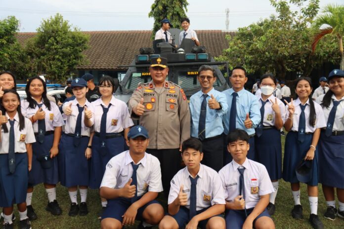 Kegiatan yang berlangsung tertib dan lancar ini diakhiri dengan sesi edukasi singkat tentang tugas kepolisian, menumbuhkan semangat cinta tanah air serta motivasi bagi para pelajar untuk terus berprestasi dan berkontribusi bagi Indonesia.
