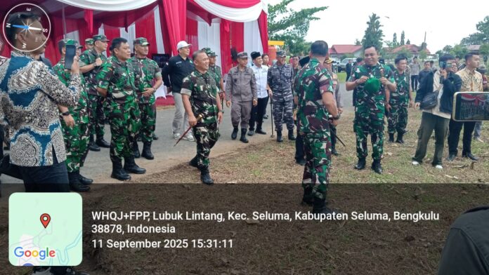 Seluma – Pangdam XXI/Radin Inten, Mayjen TNI Kristomei Sianturi, melakukan kunjungan kerja ke Makodim 0425/Seluma dan Batalyon Pertahanan Pangan di Kabupaten Seluma, Kamis (11/9/2025).